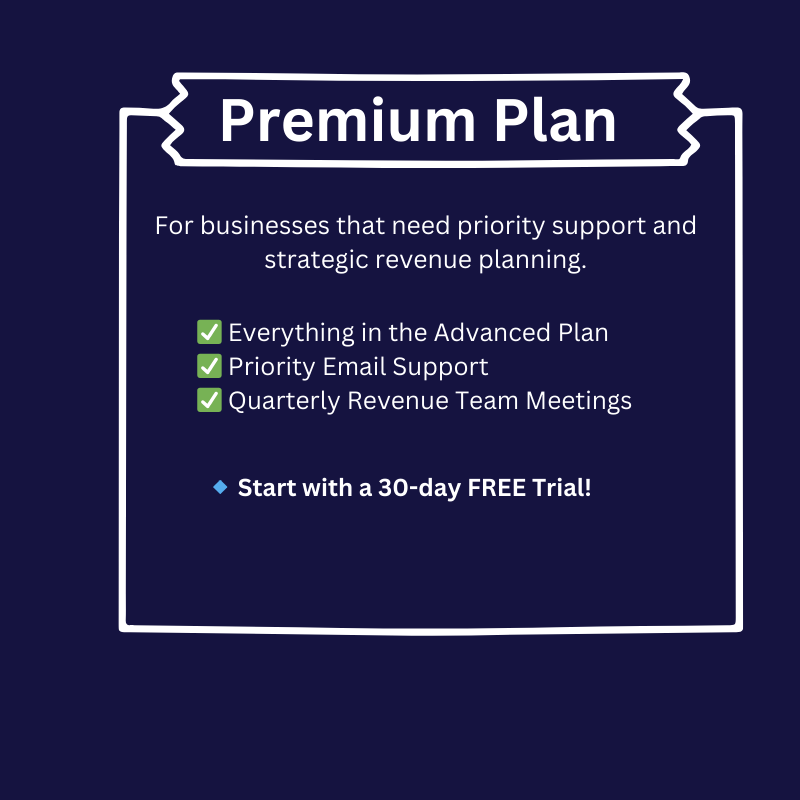 The Premium Plan offers advanced revenue management tools designed for serious professionals. In addition to all Advanced Plan features, you’ll receive Priority Email Support, ensuring quick responses to your queries. We also provide Quarterly Revenue Team Meetings, allowing for strategic discussions to maximize your earnings.